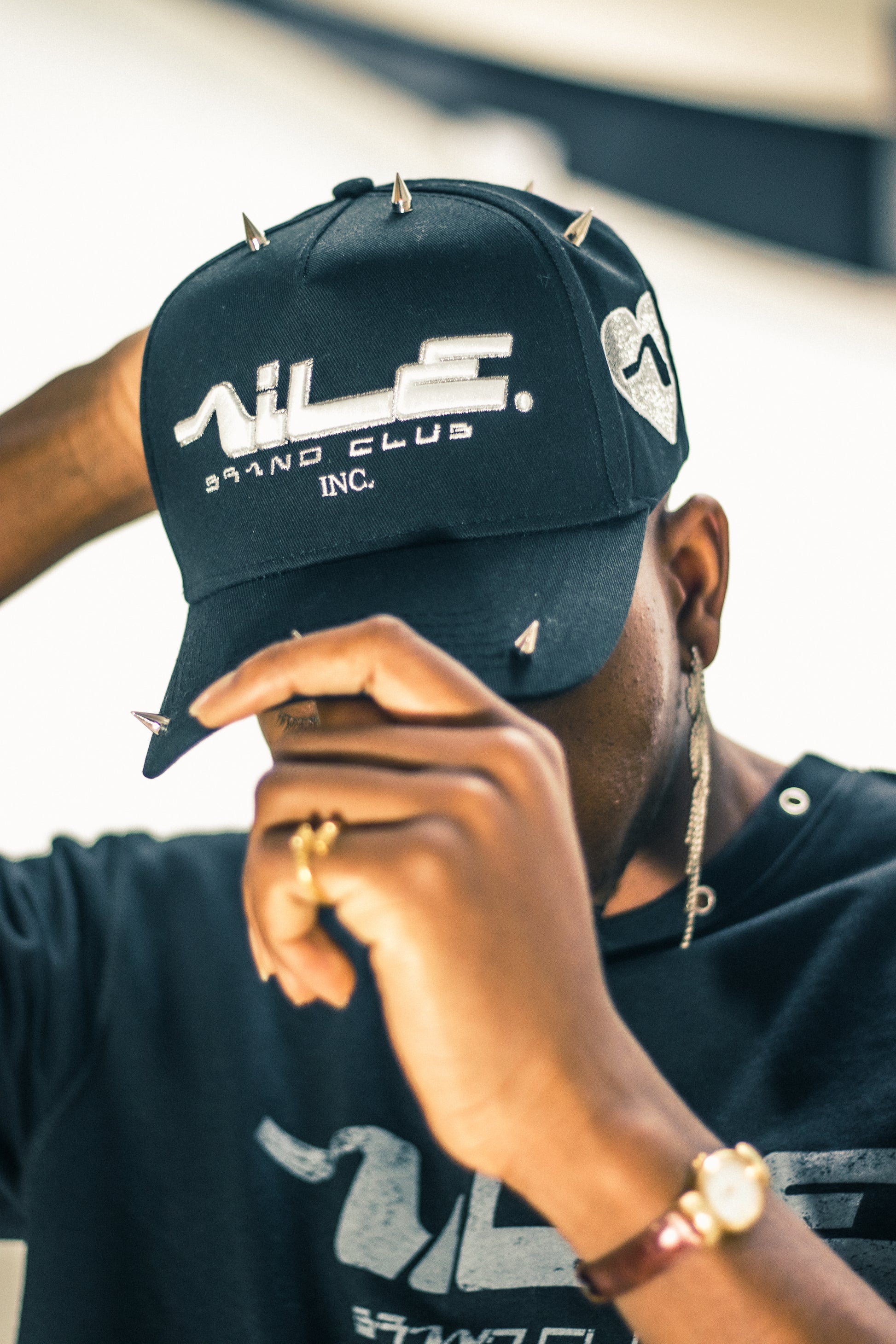 Structured baseball cap. Embroidery on the front, side and closure covered with studs.