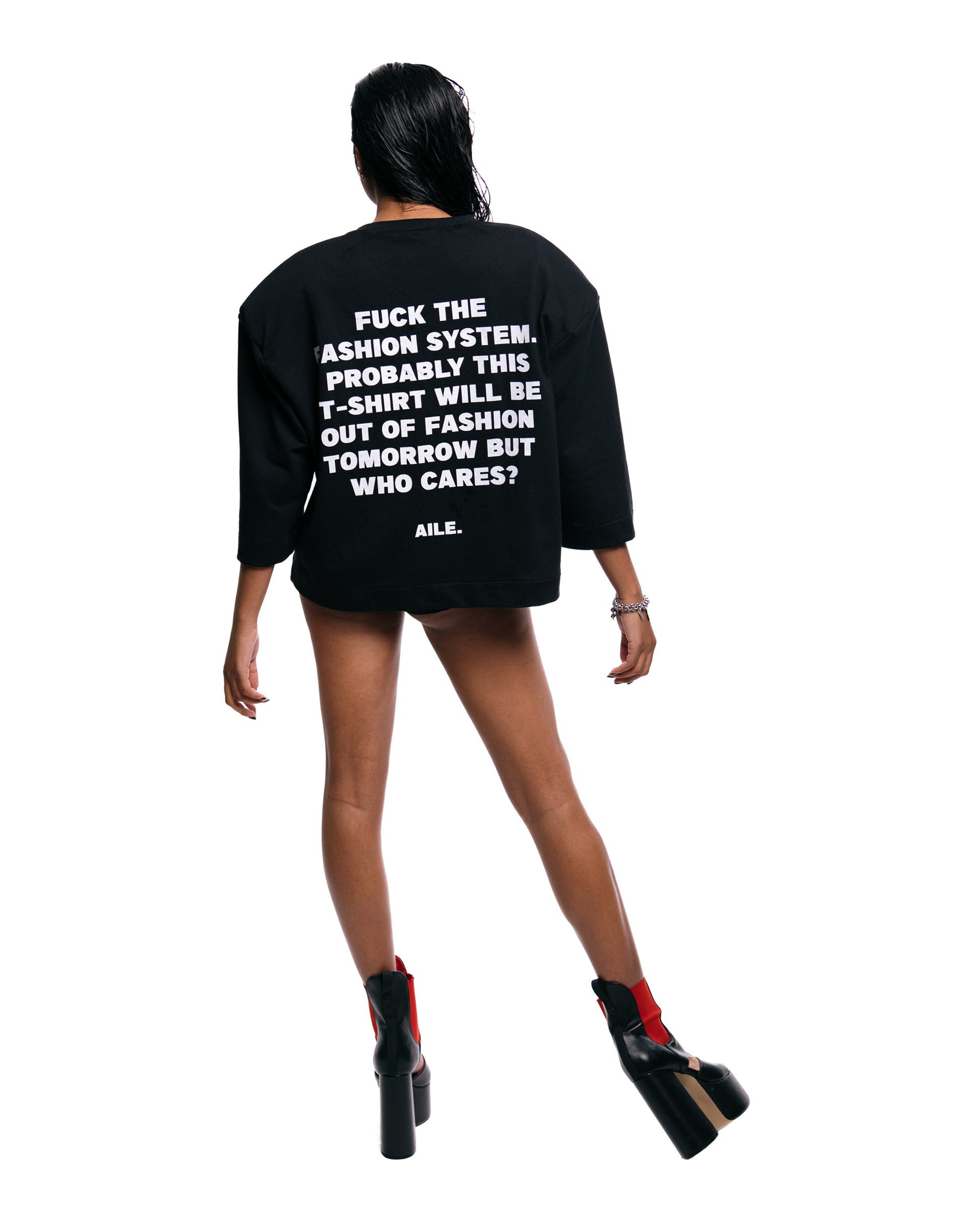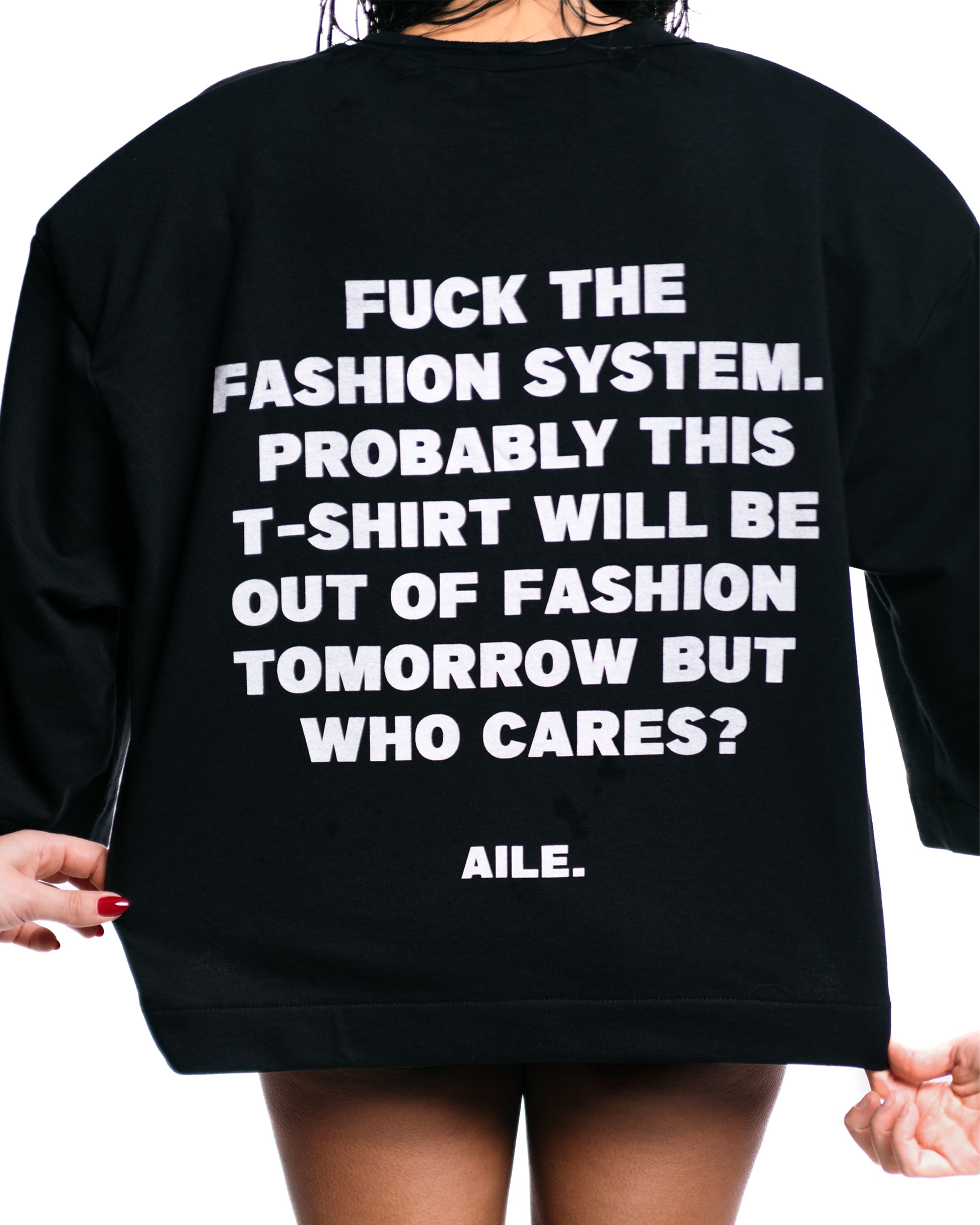 - Stamp logo "FUCK THE FASHION SYSTEM..."