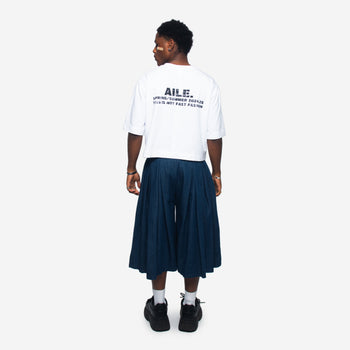 Wide skirt-effect Bermuda shorts with belt loops and pockets. Zipper closure, flap closure and internal drawstrings to adjust to the waist.