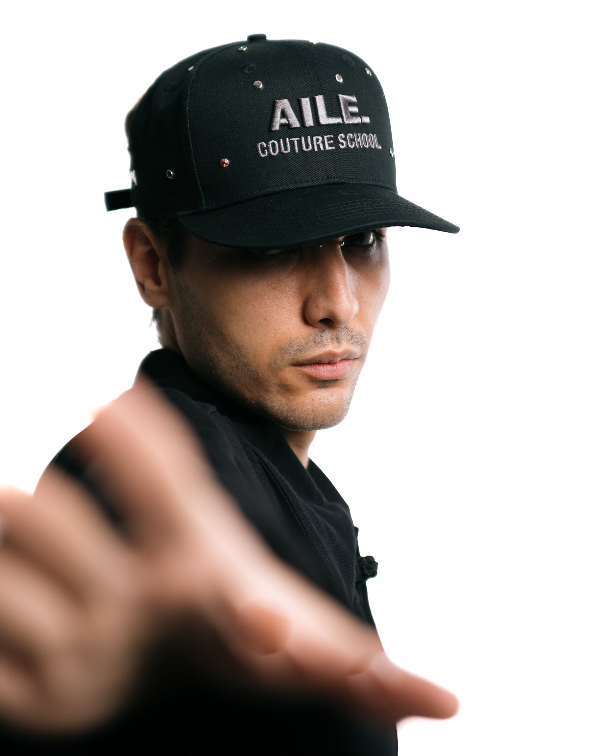 Black baseball cap AILE embroidered logo, crafted from 100% twill cotton and detailed with an adjustable buckle.