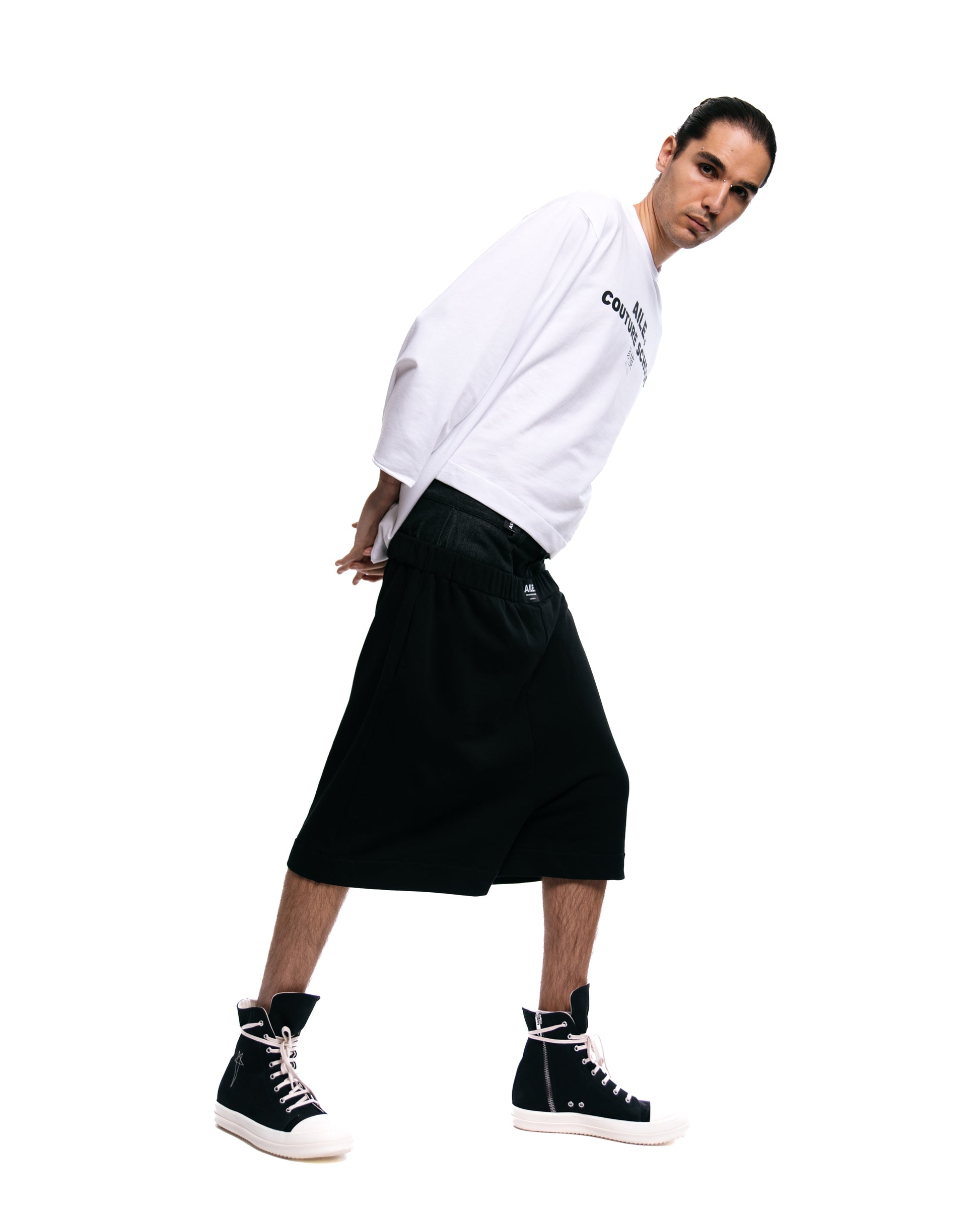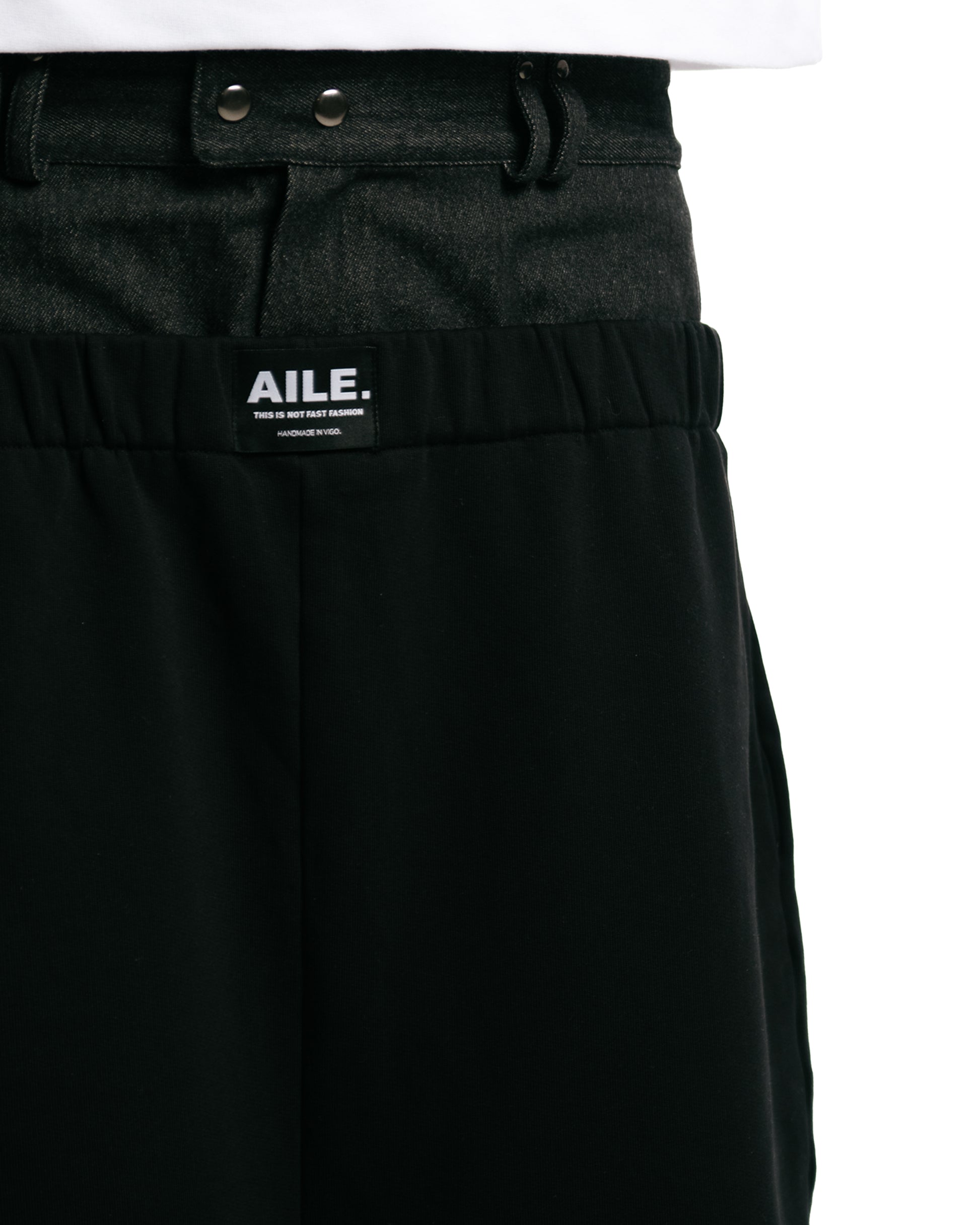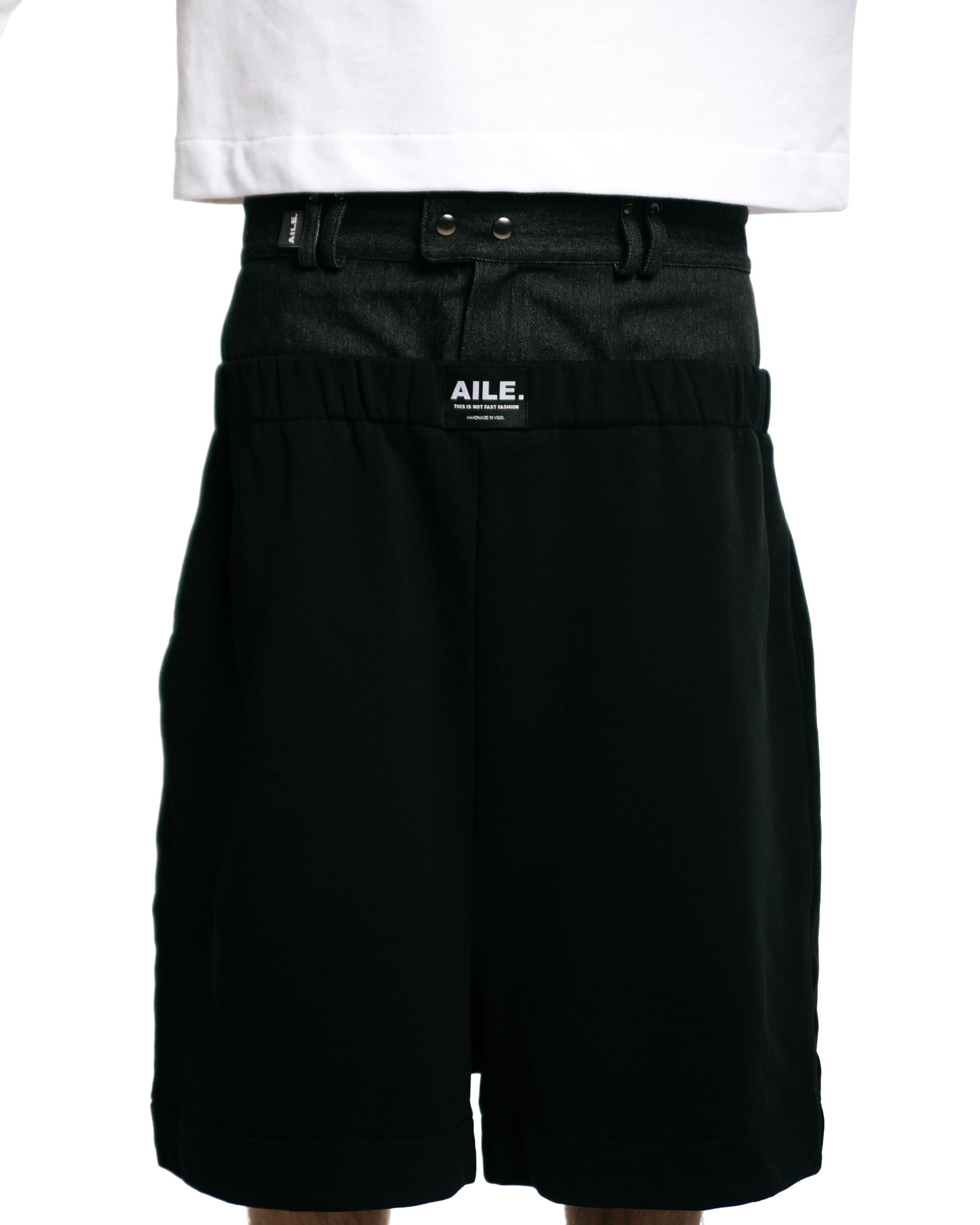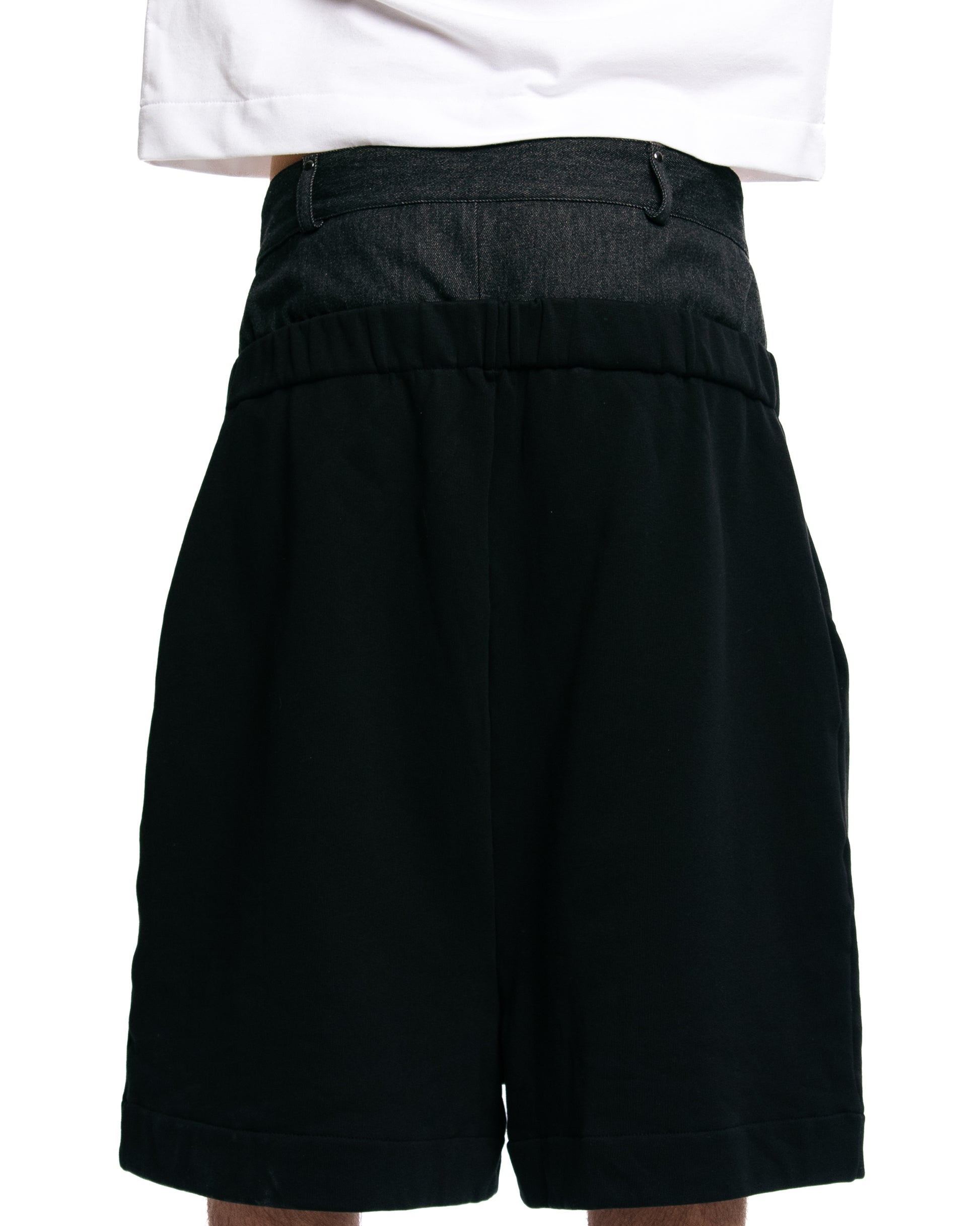 Pantalon de survêtement court en jersey noir avec double ceinture en denim noir.