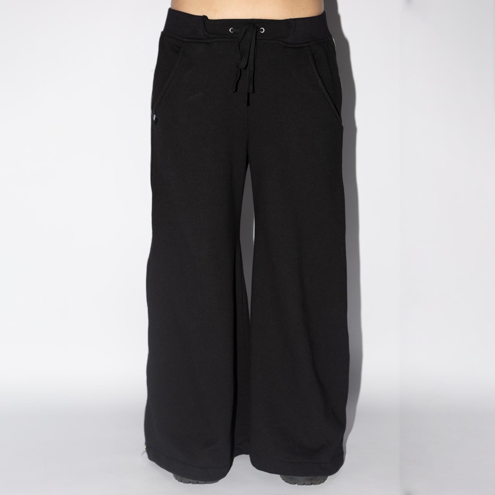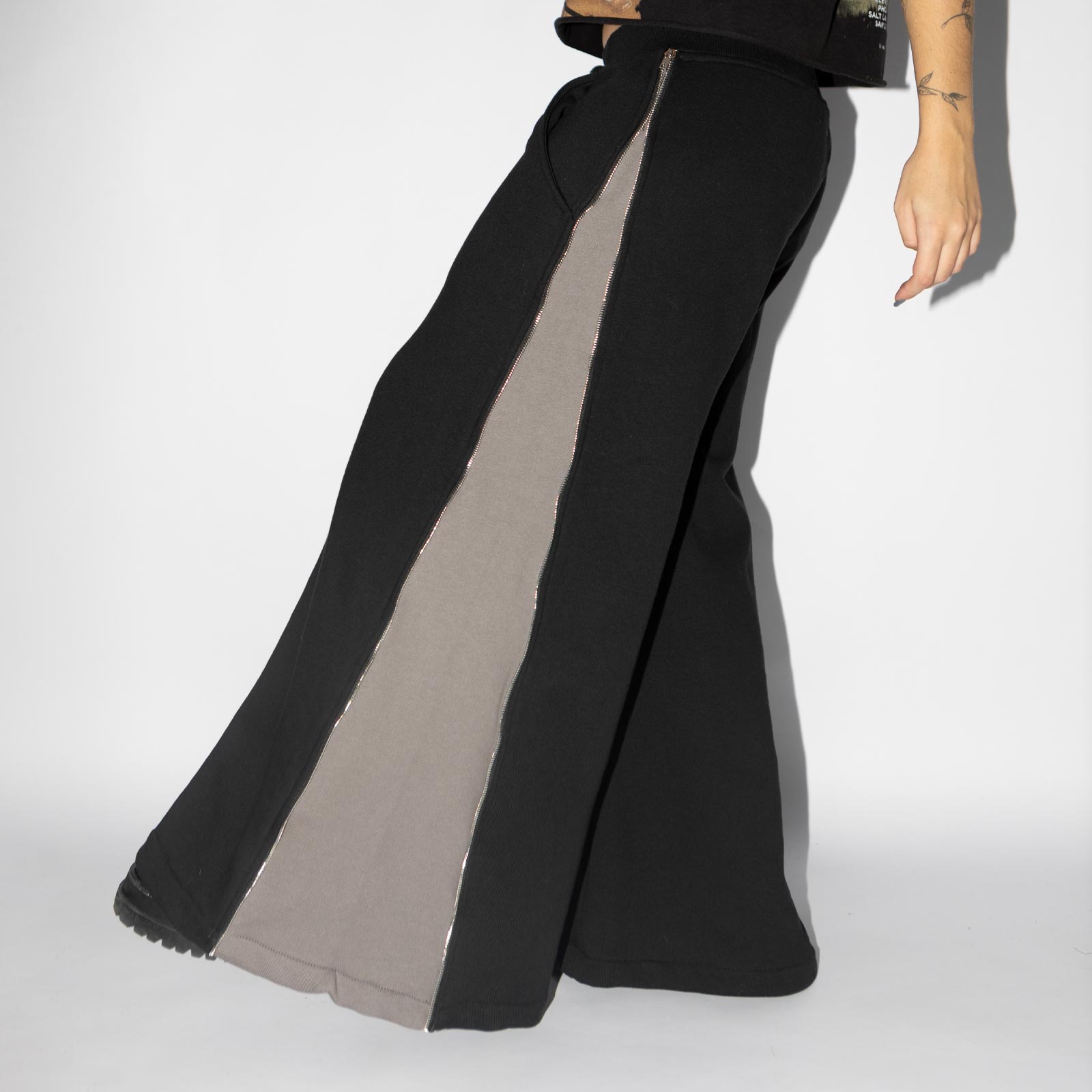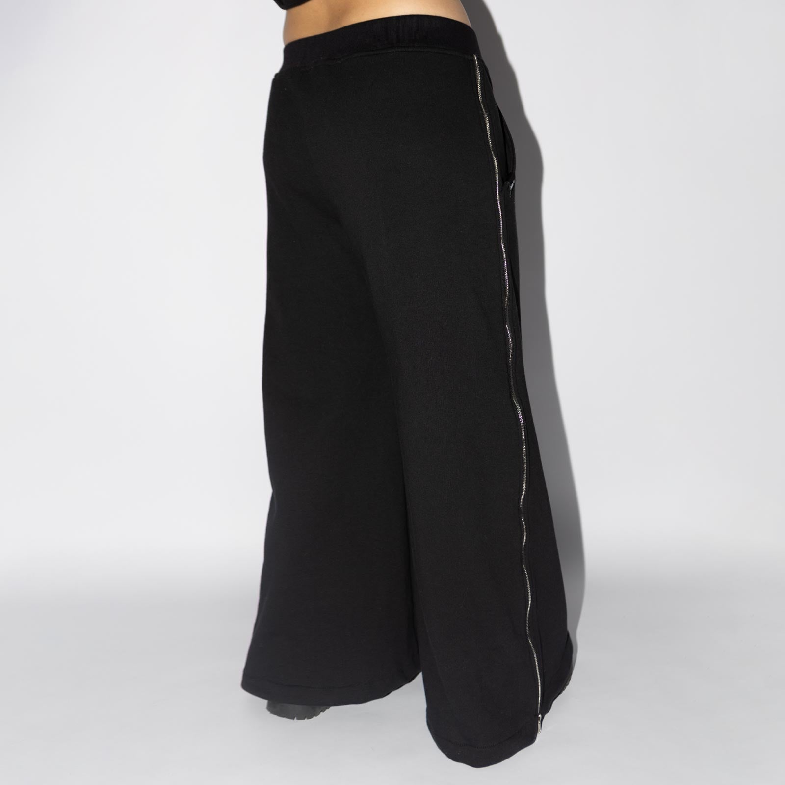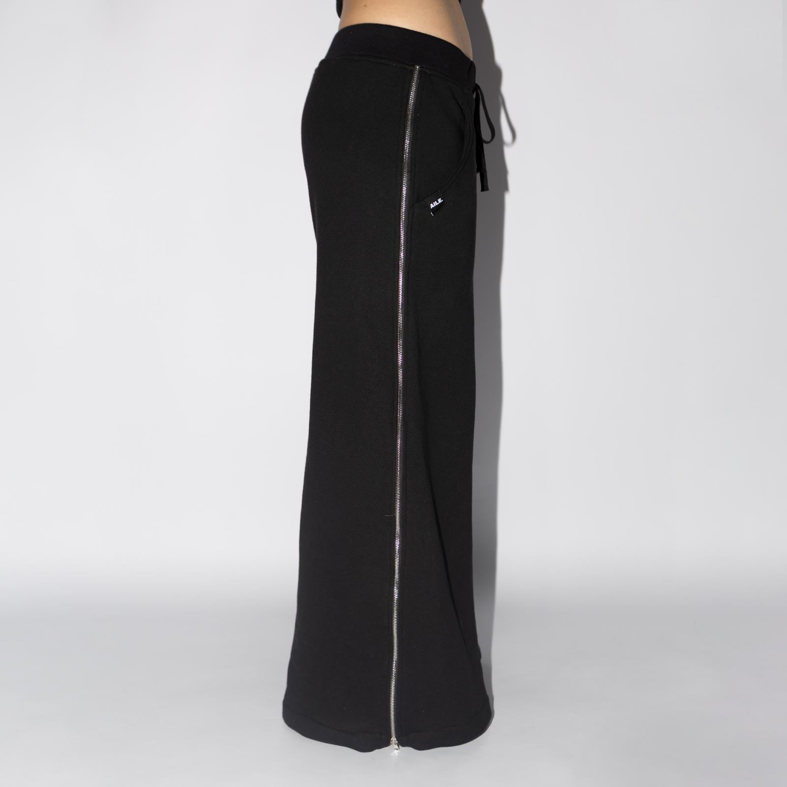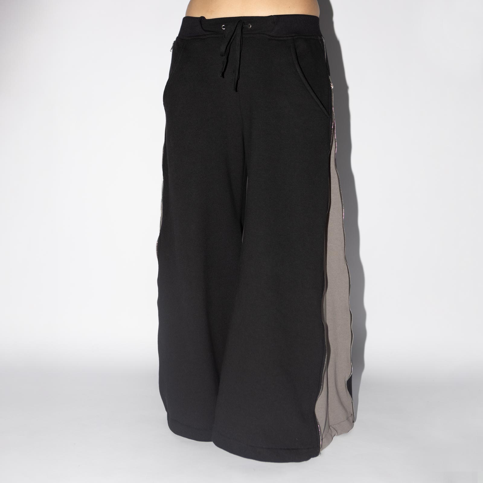 Pantalón chandal gris con cremallera lateral. Cinturilla ajustable con cordón.