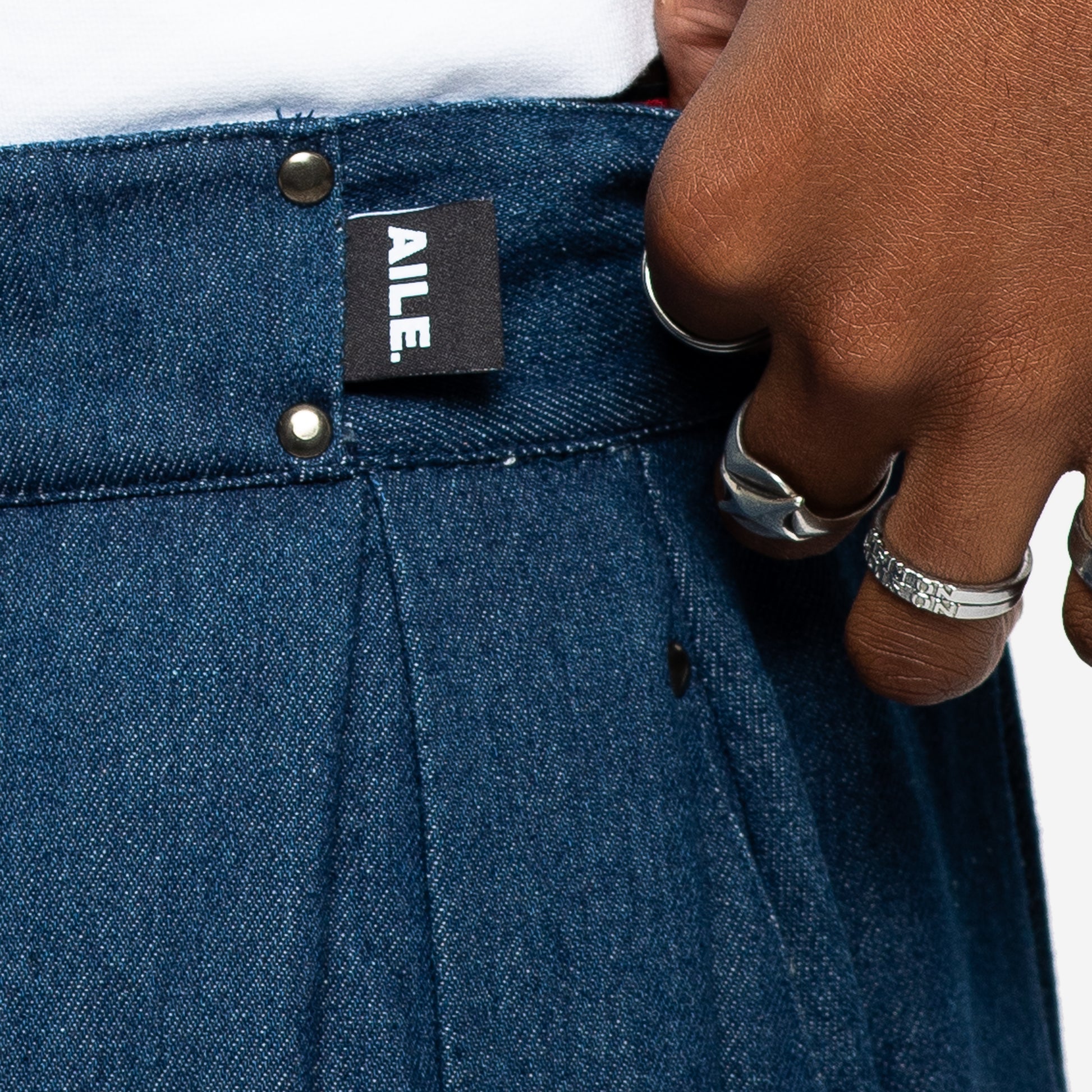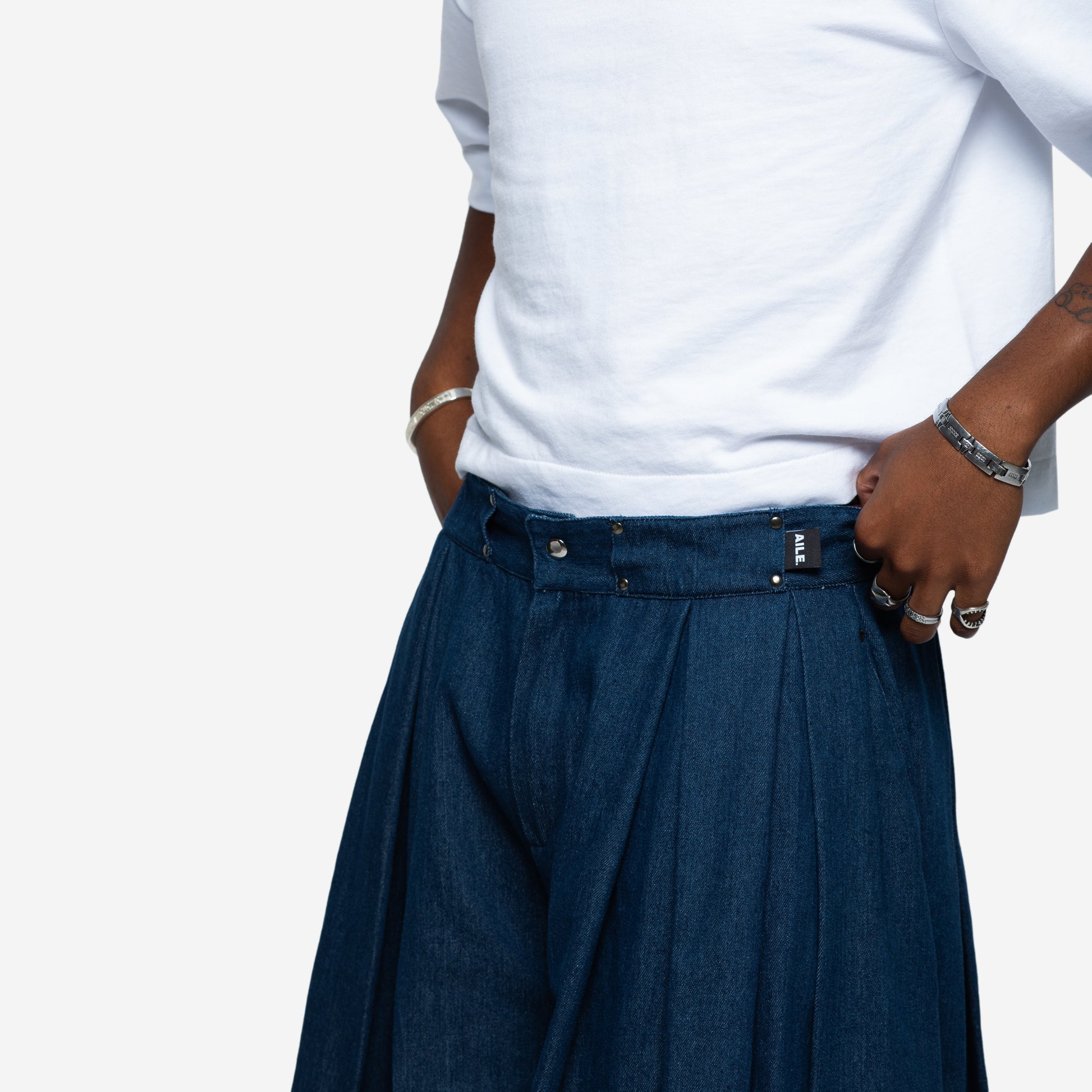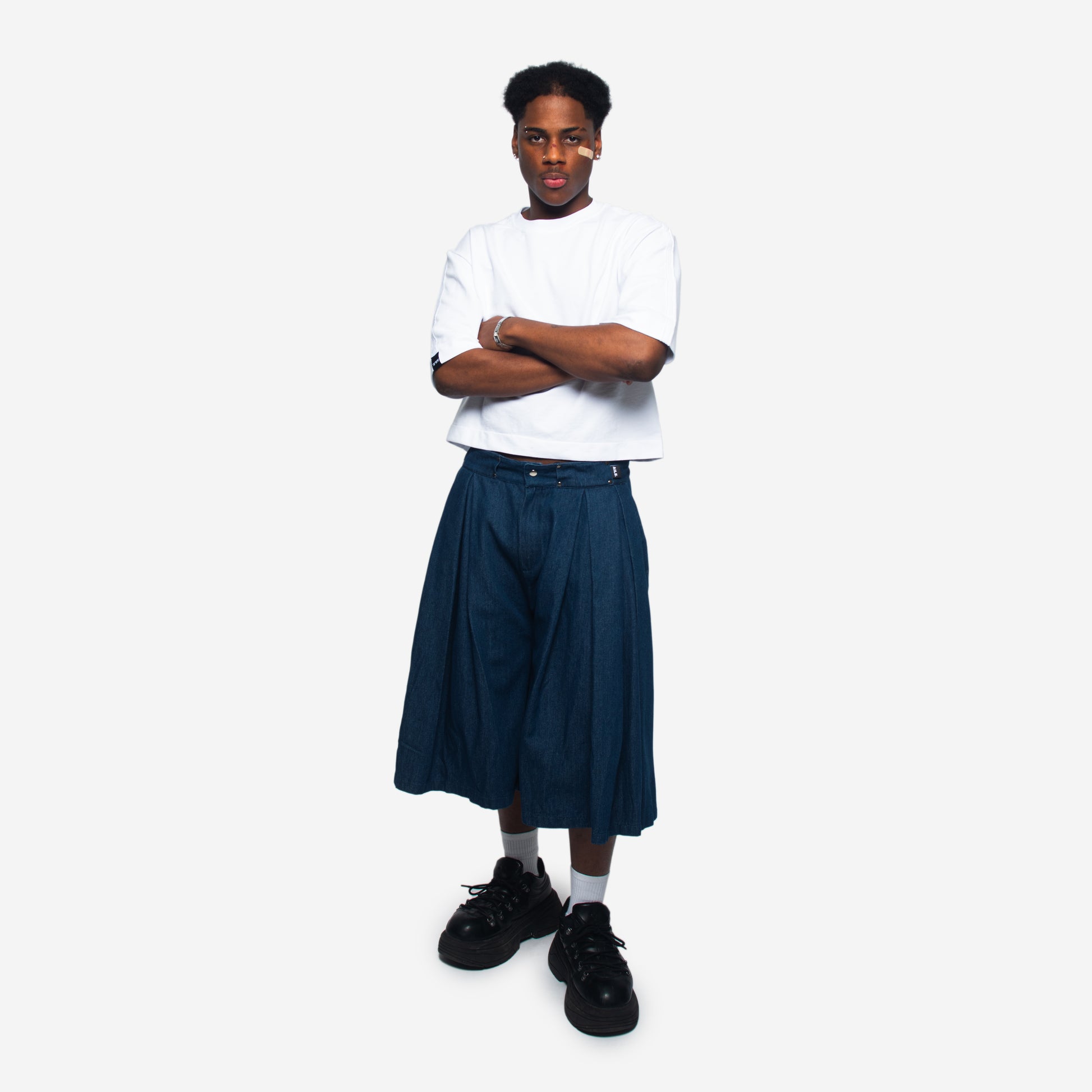 Bermudas amplias efecto falda con trabillas para cinturón y bolsillos. Cierre con cremallera, cierre de solapa y cordones internos para ajustar a la cintura.