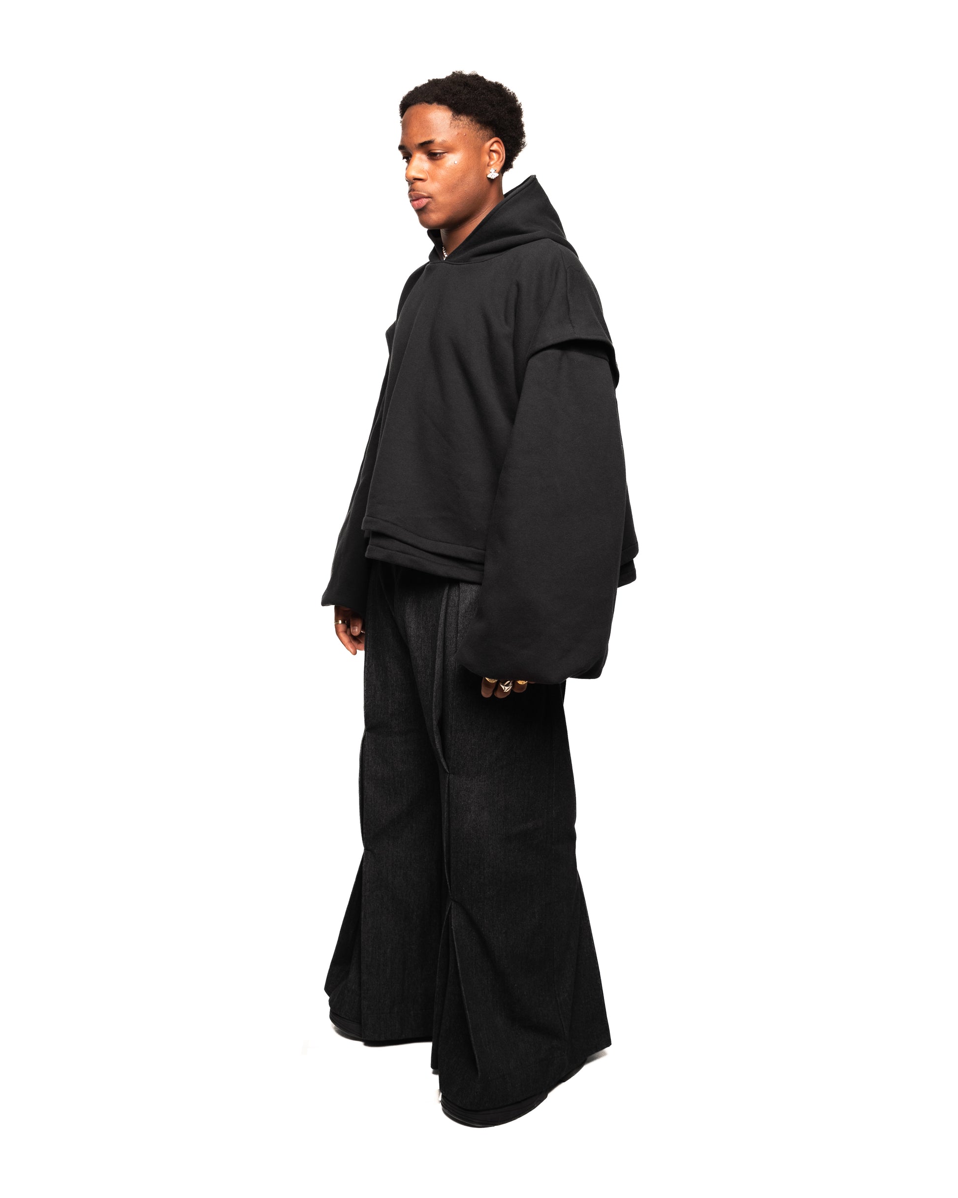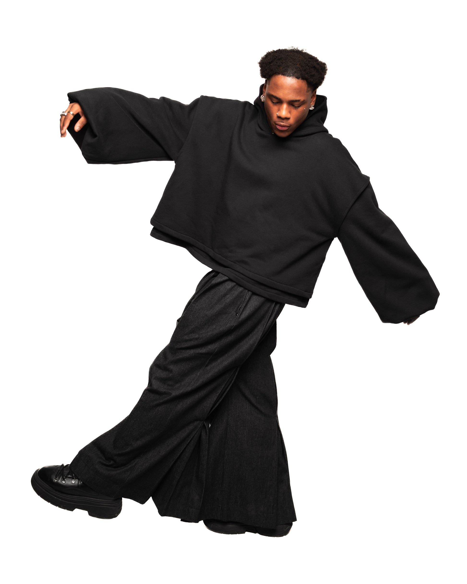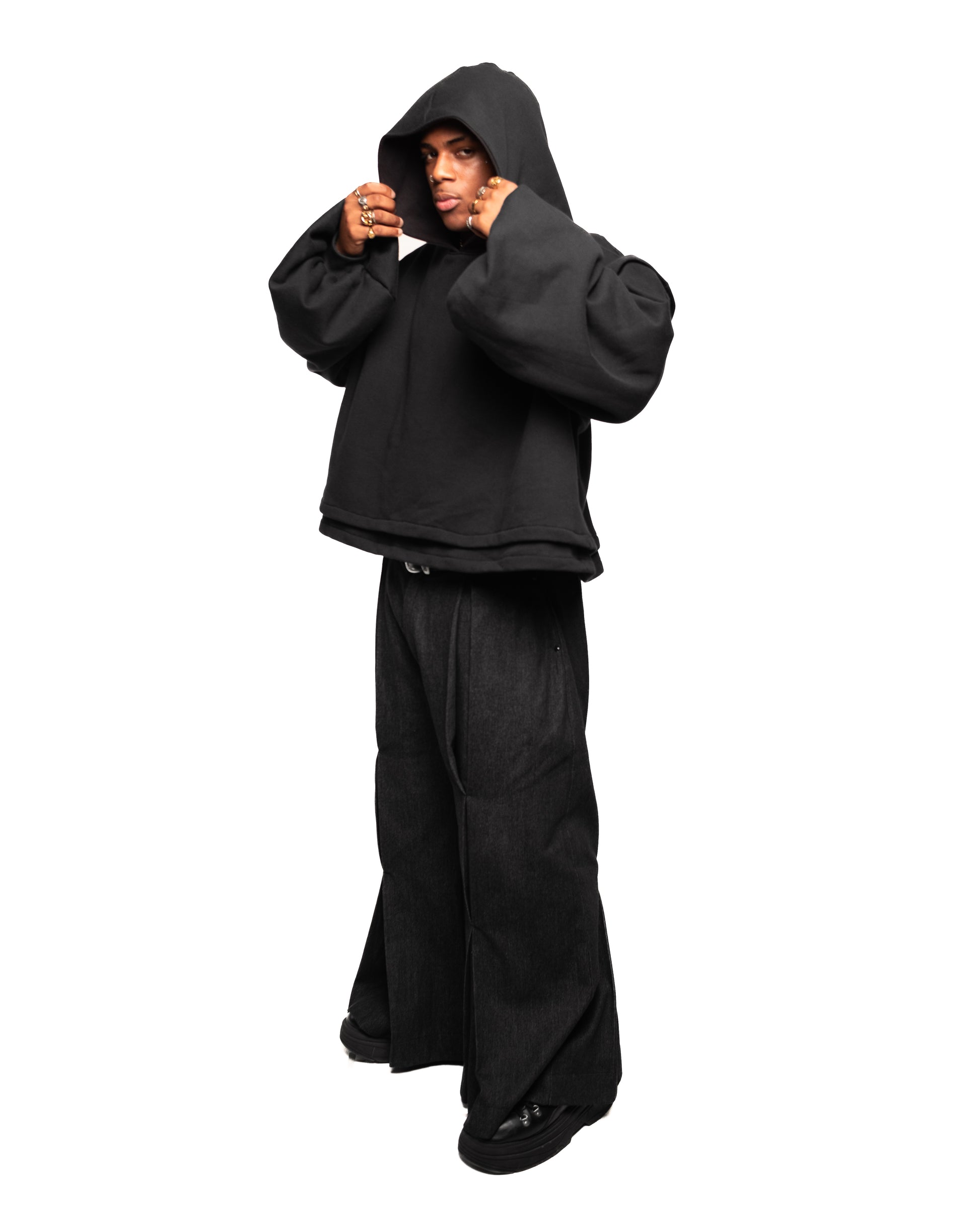 Sudadera con capucha de tejido doble (doble capa de tejido, misma por dentro que por fuera). Estampado en espalda con técnica de serigrafía de alta calidad en color blanco.